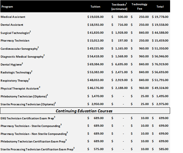 Tuition and direct expenses vary by program and are listed above. The indirect expenses below are based off a monthly average and may be prorated when academic years are shorter or longer. Indirect expenses reflect an average cost of the components that fall within the category. For additional cost of attendance budgets please contact the Financial Aid office.